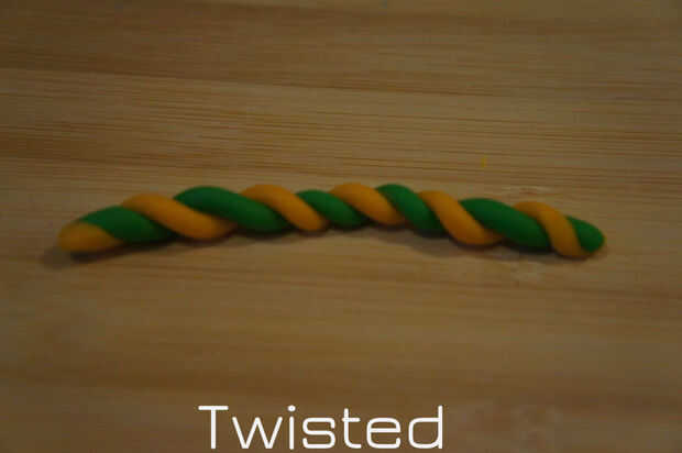 1) rodillo de fondant coloreado dos longitudinalmente por separado.