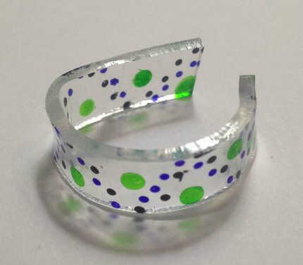 Dicho esto, con menos de 1 1/2 hojas, hice sobre 15 anillos. Algunas por supuesto no funcionan hacia fuera (tiras de 1/4" se marchitará en una bola de lío) y otros que accidentalmente rompió (cuidado donde pones tus golpes de agujero).