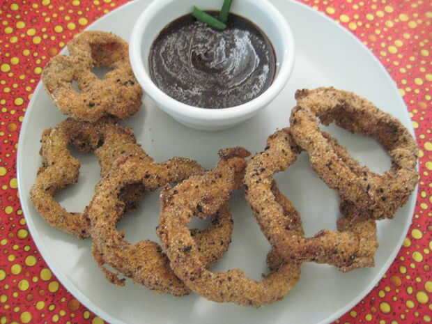 ANILLOS DE BACON DE PALEO* 1 paquete de tocino fresco* 4 aros de cebolla dulce en rodajas* 2 T pimienta negra * 1/2 taza casera salsa Sriracha (viene en un segmento futuro!)-Cortar la cebolla en aros gruesos de 1/2 pulgada y pop los anillos internos