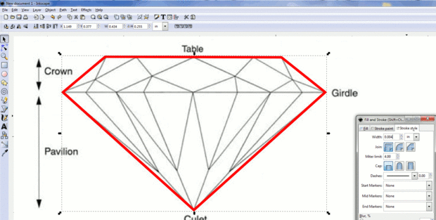El láser corta o graba las líneas que son los 0.300pt (0.00416 en) y por debajo. Para reducir la selección de tamaño el objeto ir a objeto -> relleno y trazo... o simplemente escriba Mayús + Ctrl + F. En la ventana de relleno y trazo haga clic en la pestaña estilo de trazo y luego cambie la anchura a 0,004.