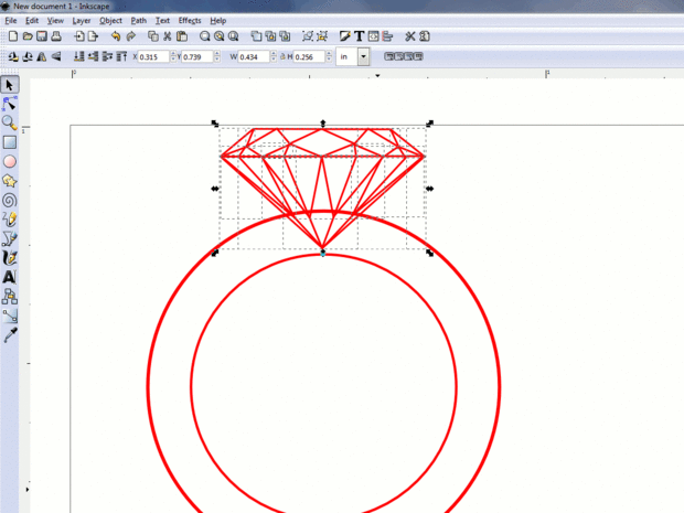 Seleccione el diamante entero y arrastre en la parte superior del anillo donde usted quiere que sea.