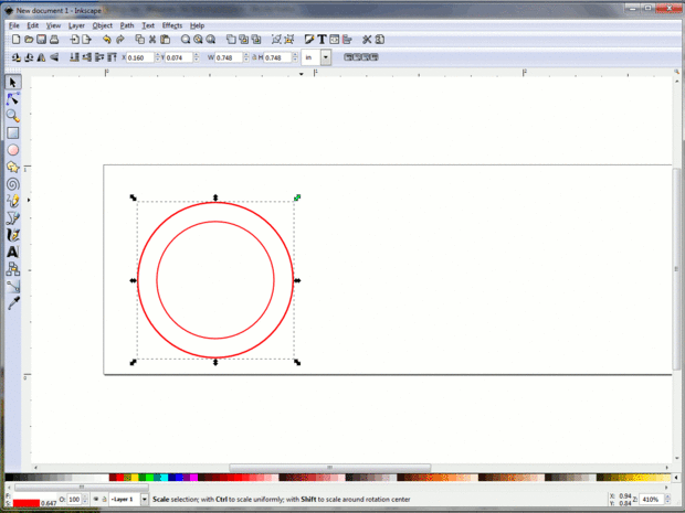 Manteniendo Shift y Ctrl tira la flecha diagonal que crea el parámetro exterior del anillo.