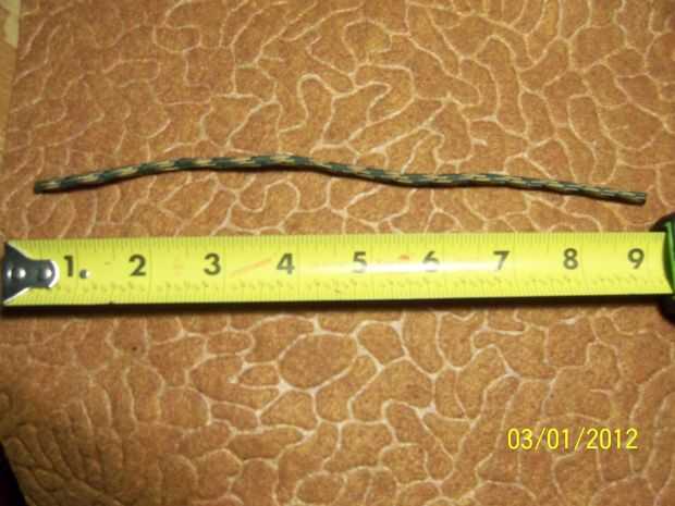 elegí colores que tenía que coincidir con las pulseras de supervivencia paracord que ya había hecho. Mide unos 9" hacia fuera para un anillo. Esto puede variar según el tamaño de su dedo.