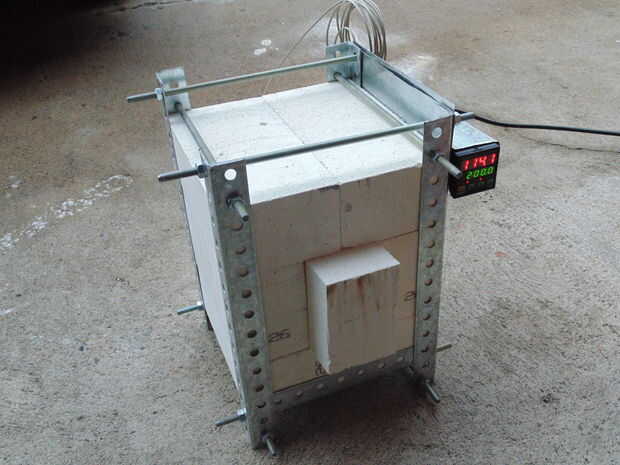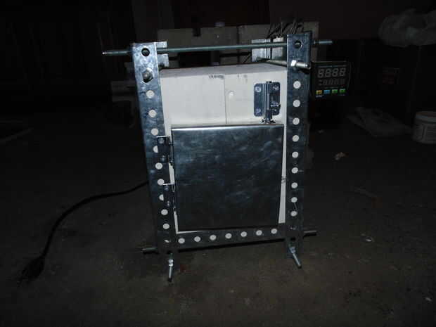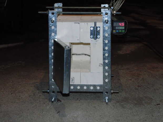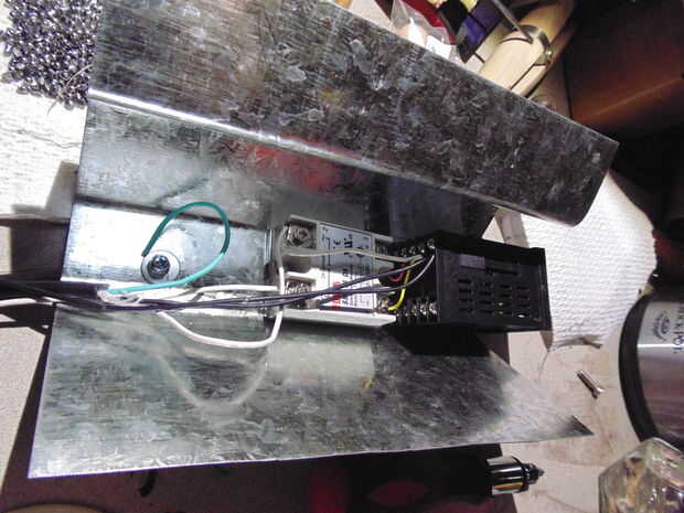 - Conecte el termopar. En este punto doblar la chapa todo el camino para hacer una cáscara para la electrónica y una aleta que se conecta el horno.