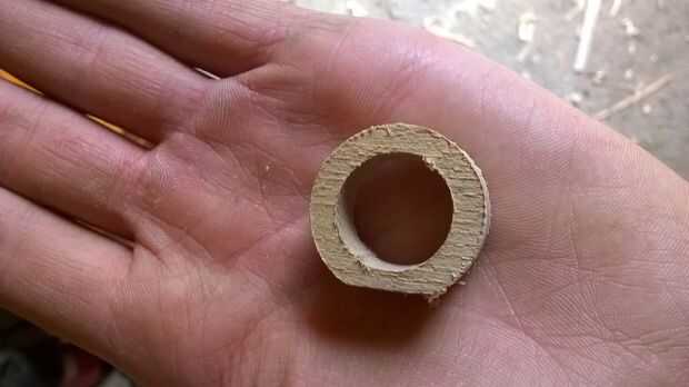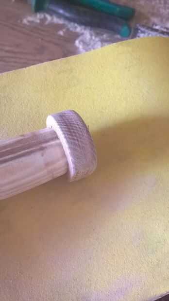 después de terminado perforación le debe obtener algo como esto o un círculo, entonces a poner en el taladro [o hacer un cono cosita para caber el anillo como lo hice] y lejos de la arena hasta que estás satisfecho con el resultado
