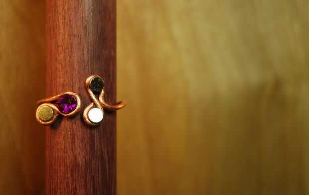 Lo conveniente de esta y la siguiente, diseño del anillo es que puesto que no son círculos cerrados, son ajustables.  No es un problema si resulta que el cable estaba un poco demasiado largo o corto.  También puede usar en cualquier dedo.