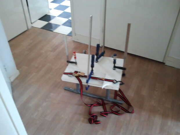 hacer un práctico conjunto de anillos olímpicos para tu gimnasio en casa o llevarlos contigo durante el viaje para conseguir una rápida WOD Crossfit en cualquier lugar.Paso 1: Se necesita:-Madera contrachapada (usa 18mm de contrachapado marino y pega