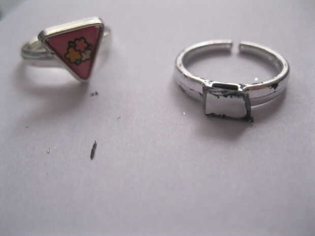 en primer lugar, cortar lo que sea en su anillo (im usando estos baratos poco hello kitty anillos ive tenía desde que era como 5).