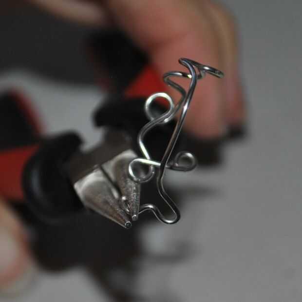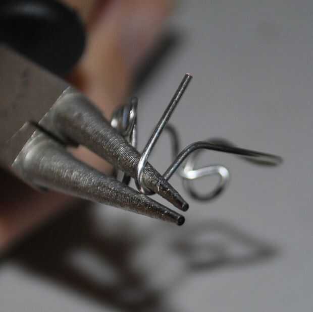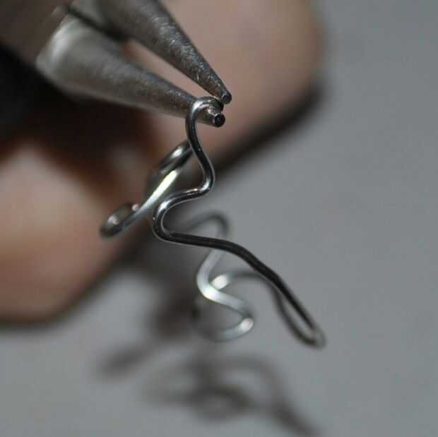 Acabado su anillo de sus alicates de punta redonda y terminando el lazo del corazón.