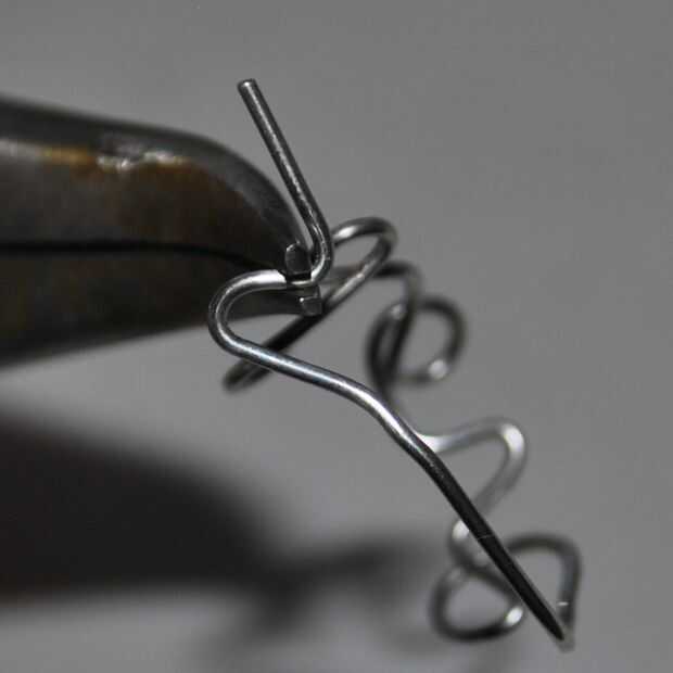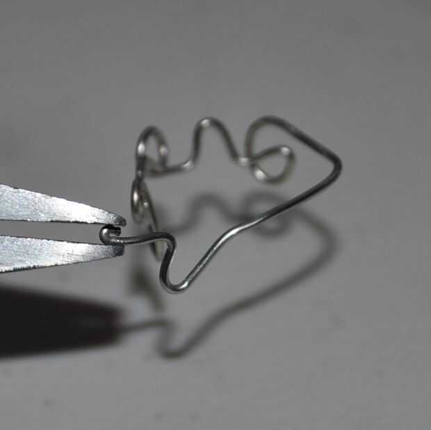 Tomar su aguja alicates y colapso del bucle que acaba de hacer para que el extremo del cable está sentado plana contra el resto del anillo.