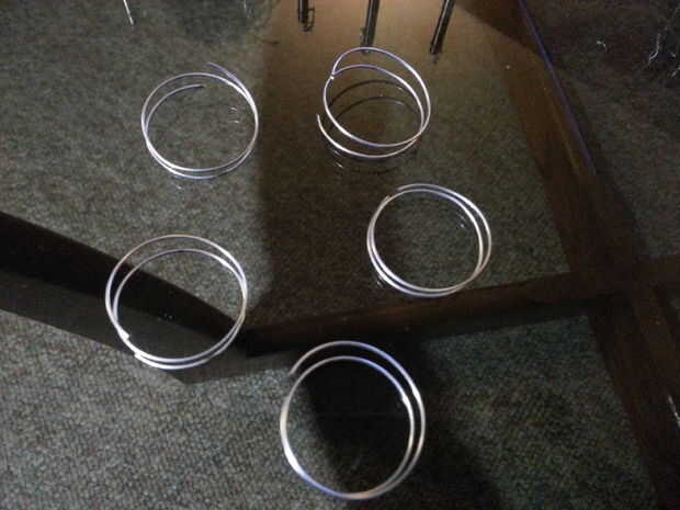 Envolver firmemente alrededor del tubo de cristal taco muchas veces. Deslice el Homemade "Slinky" fuera de la espiga y corte en trozos de igual longitud. La primera "generación" fue hecha con alambre galvanizado y recomiendo cortarla en 3-4 bucles en lugar de los 2 que se muestra en la foto primera.