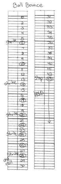 Ya que estamos animando una pelota, sería una buena idea para obtener un balón hinchable y jugar con él. Observar cuánto tiempo tarda para obtener a través de cada arco, cuánto tiempo que se queda colgado en el aire. Anote sus observaciones y usarlos para construir su hoja de droga. Marca, con espaciamiento apropiado para reflejar el paso del tiempo, un dibujo por cada punto de alta y pulsar la bola hará que en la animación.