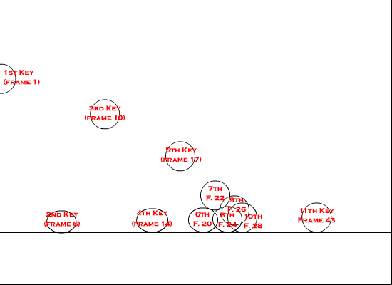 Lo primero que tienes que hacer es dibujar los fotogramas clave. Estos son los puntos claves en el movimiento de la bola. O más sencillamente, son los puntos de ataque en el piso, los puntos más altos de los arcos que hace la bola que rebota y el punto. Estos son lo que usted debe han marcado en su hoja de droga. Cambia tu hoja de droga si es necesario.