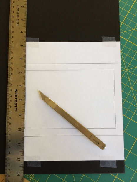 La impresión a su tablero de lámina perimétrica de la cinta y cortar con un exacto-o. Las líneas de "puntuación" se deben cortar sólo a medio camino a través.