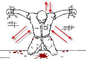 Anteriormente he mencionado que el hombre ha sido golpeado y atado, así como él nos despierta lo hará toser sangre y respira pesadamente. La secuencia para hacer esto se ha demostrado en las imágenes. Las primeras siete imágenes muestra la secuencia de la acción de tos.