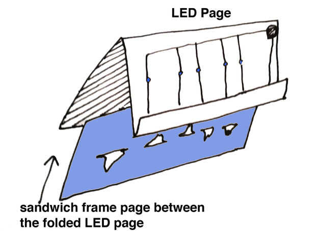 El LED estará en la parte posterior, con los marcos en el medio y una página en blanco en la bloquea... para la magia ocurra!