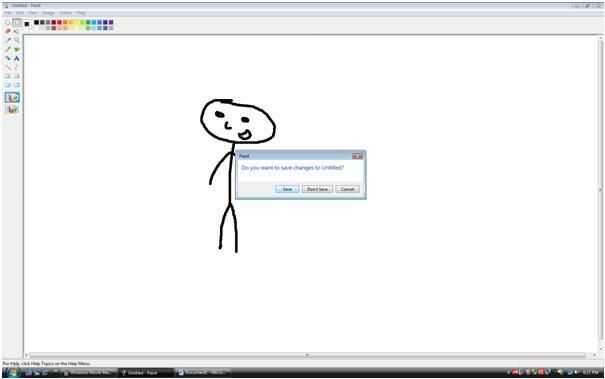 Vendrá para arriba diciendo "¿desea guardar los cambios sin título?" haga clic en guardar y guardar como lo que quieras y luego 1 (yo escogí 1 sin título) y luego haga clic en guardar y se presentará una nueva pintura