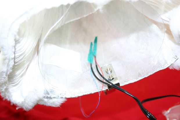 Enrolle cinta aislante alrededor de las conexiones de soldadura.  Con cinta de embalaje transparente, asegurar la conexión dentro del cono de plástico (dentro del ángel de topper).