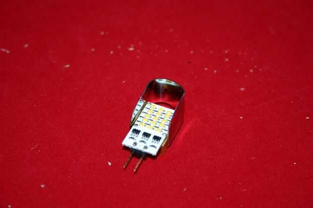Porque la luz es muy brillante y molesto incluso desde el suelo, un escudo es necesario para evitar la visibilidad desde el nivel del ojo humano.  Tomé un trozo pequeño de acero inoxidable de 1/2 pulgada y forman un apretado (extremos tocando) la forma de "U".  Presión este ajuste sobre la luz y la luz debe ir todo hacia arriba.