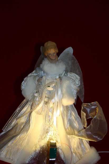 Mientras el ángel está todavía en el suelo, ajustar el soporte hasta que la luz brilla donde usted lo desee.  Si esperas hasta que este cableado en la parte superior del árbol, usted no será feliz mientras que precariamente en pie sobre una silla o taburete y tratando de ajustar el patrón.