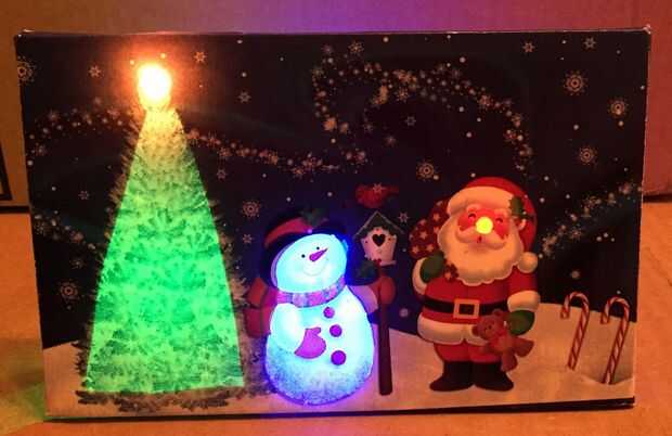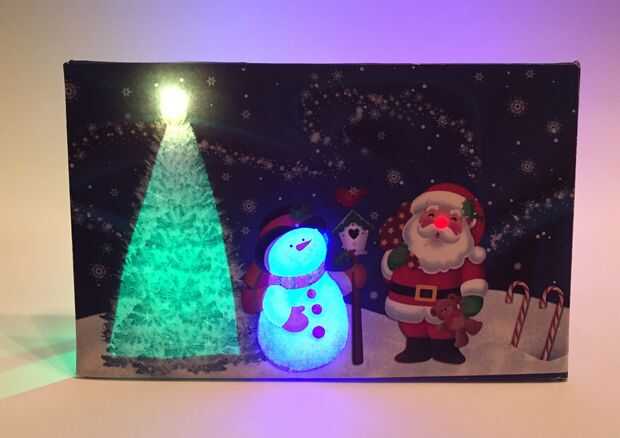 Este es un divertido proyecto de vacaciones usando digital LED para luz de fondo una escena de vacaciones. Un Arduino ejecuta las animaciones de LED, para que pueda utilizar diferentes efectos para cada LED. Variando la distancia de los LEDs desde el respaldo, usted puede controlar el área que cubren.