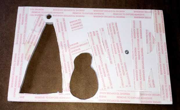 Para averiguar dónde cortar la base de la espuma, tomé la principal imagen, volteado horizontalmente y pegada a la base de la espuma. Entonces se pueden recortar las zonas deseadas de ese patrón.