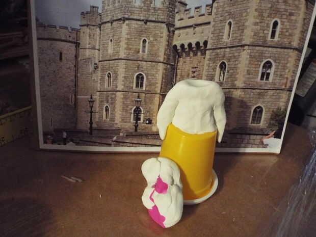 Ya que yo quería hacer una figura de Kiteman, utilicé arcilla blanca para formar la parte superior del torso. Supongo que podría haber hecho la figura completa pero solo lo encima de uno de los contenedores de arcilla apoyados.