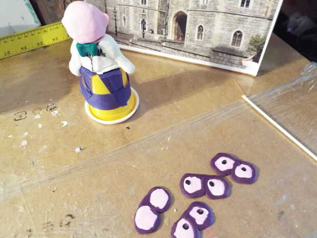 El conjunto de arcilla no tenía negro usé sólo un marcador permanente de pupilas de ojos y detalles de la camisa.