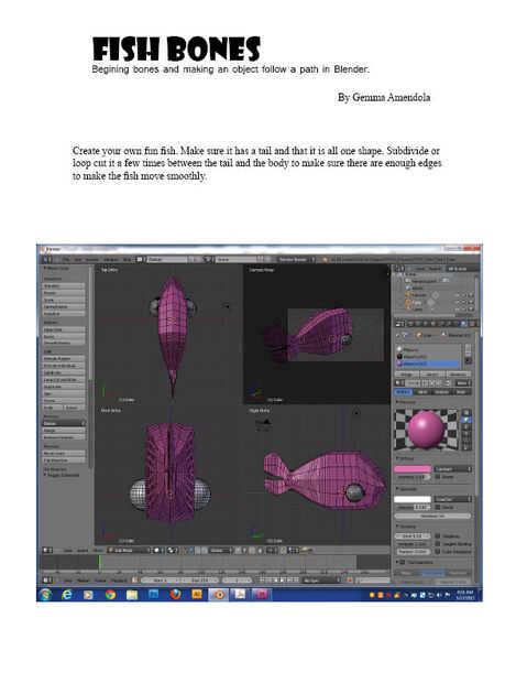 Para este tutorial, utilizará software de animación 3D Blender. Diviértete creando un pescado de cualquier tipo como cola. En este tutorial usted aprenderá cómo utilizar simples huesos, cómo animar mediante una ruta de acceso y uso de un emisor. Este es un tutorial para principiantes pero ya debe saber navegar en licuadora y cómo crear y manipular formas.