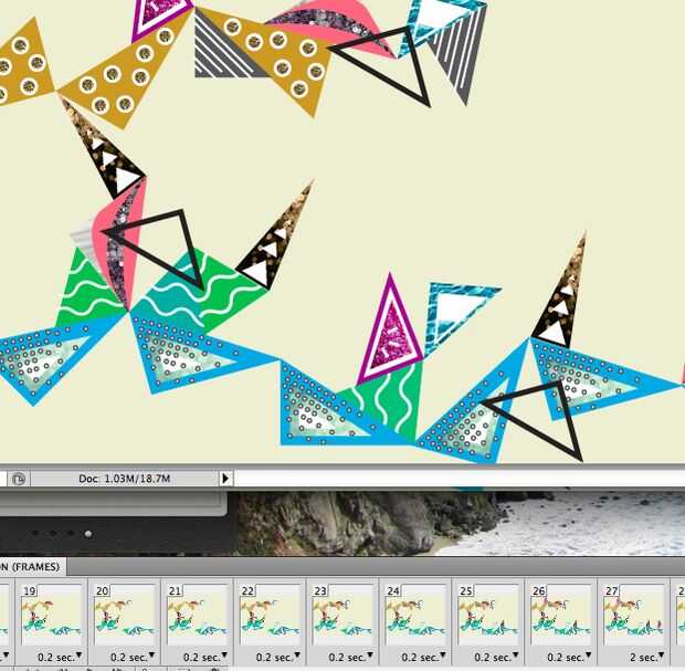 Una vez que tienes todos los símbolos en archivos por separado puede importar todo a photoshop. En photoshop es importante poner cada forma en una capa diferente. También puede comenzar a organizar la composición de los sonidos. Cuando todas las formas existen, necesitará abrir la pestaña de animación que se encuentra en la pestaña de "ventana" en la parte superior derecha de la pantalla. Verá una serie de fotogramas, y cada fotograma se puede cambiar dependiendo de la longitud. Para comenzar a crear la animación necesitará ocultar todas las capas que no desea visibles al principio. Con cada adición de movimiento hacer visibles las capas en un nuevo marco. Por ejemplo el primer fotograma tienen todas las capas ocultas, mientras que el segundo marco tendría el primer fotograma mostrado. Hacer esto hasta que haya completado la animación.