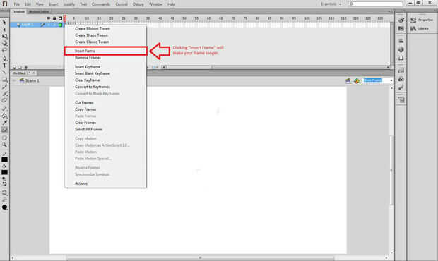 Puede arrastrar sus marcos hacia fuera haciendo clic derecho el marco que desea y elegir la opción "Insertar fotograma". Esto será el doble de la longitud de la fabricación de marco animar en dos. Si se arrastra hacia fuera por tres marcos están animando en grupos de tres.