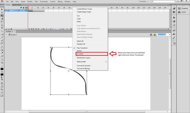 Cuando se tiene la herramienta de selección que puede resaltar su arte. Desde este punto que usted puede hacer muchas cosas, como eliminar el arte ha seleccionado presionando el botón de retroceso/DEL teclado, o se puede hacer clic derecho e ir a "Transformación libre". Ahora puede cambiar el tamaño de su arte, rotar o escalar (mantenga shift mientras reescalado para no estirar o deformar su arte). Envolvente es también una herramienta útil y se puede acceder a ella seleccionando su arte, clic derecho y clic en "Sobres". Usando sus sobres le permitirá a su arte en cualquier forma que desee.