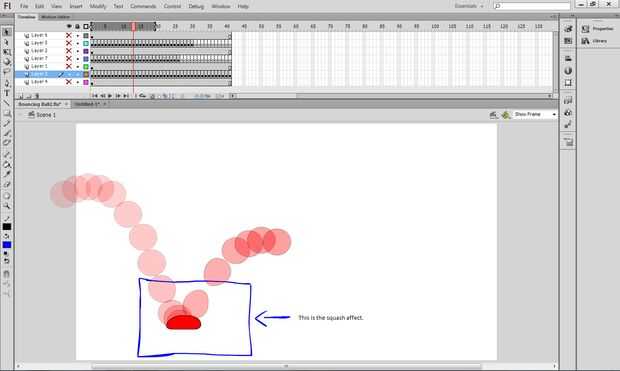 Squash y stretch es exactamente como suena. Con la bola que despide puede ver esta técnica se utiliza cuando la bola golpea el suelo mientras que la gravedad tiene en efecto de estiramiento y aplastamiento de la bola (vea el cuadro uno). Otra manera de mirar esto es dividiendo los objetos en trozos, cuando se aplica fuerza a un lado de la bola será aplastar patadas una vez y cuando el balón abandona el pie se estira luego ponerse detrás sí mismo volviendo a su estado normal (ver foto dos).