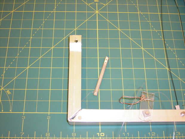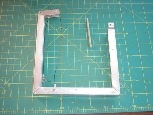 Ata el sedal en la parte inferior por el agujero que ha perforado, la mitad de los 2 orificios están alineados con los agujeros en la parte superior delantera del bastidor (ver fotos).
