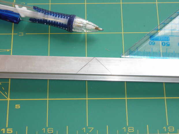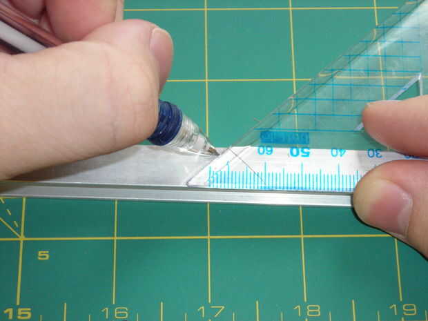 Para ello, miden unos 5 cm de un extremo de la barra de aluminio y marque en el lado sin la abertura.