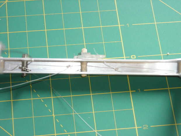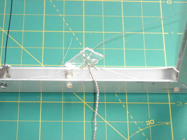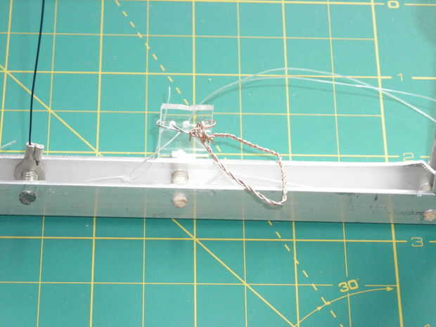 Por último, tomar una longitud decente de alambre trenzado y sujete un extremo en el bucle de alambre. Crear un bucle de alambre trenzado detrás del interruptor y pegamento caliente el cable con el pincho de bambú en el agujero del interruptor (cola caliente no se adhieren al aluminio).