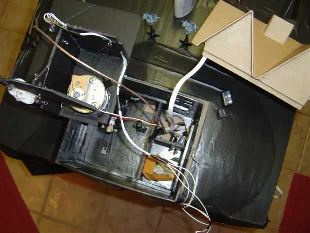 El ataúd fue realmente fácil. Sólo a 30 rpm del motor con un brazo en él, añadió el eje y añade el brazo del esqueleto. Llevó más tiempo hacer/tamaño/corte/pista un patrón para el ataúd. Me negué a comprar una aunque usted puede encontrar fácilmente ataúdes miniatura alrededor. Tuvo que añadir un cuarto a la parte inferior de la tapa que le tire a la mano. Más divertidas para hacer que comprar.