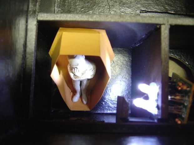 Hemos añadido la momia a una sala con sólo un LED ajustable strobe kit. Se utilizó la plantilla del féretro desde el cementerio de este ataúd así. Fácil como puede ser.