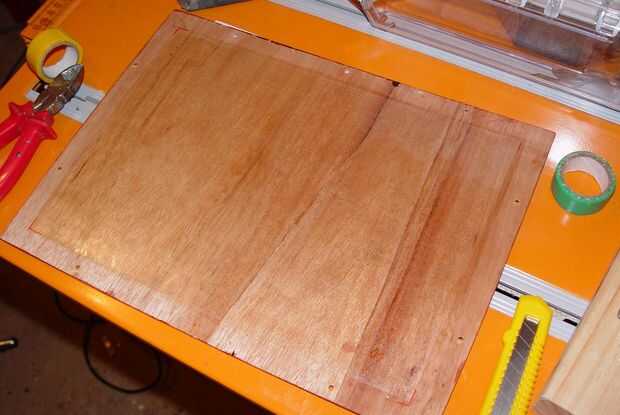 En la parte inferior de la Junta, que quería asegurarse de que el soporte de imán podía deslizarse a lo largo fácilmente - usé pegamento spray para fijar una hoja de película de transparencia OHP sobre la madera.
