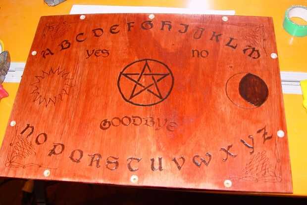 Mi plan original era utilizar una hoja de plexiglás o metacrilato para la tapa e imprimir mi diseño Ouija en algún pergamino buscando papel y barniz pegamento lo en la parte superior - sea una idea para usted. Sin embargo creo que no habría visto muy artesanal, por lo que terminé haciendo otra cosa...
