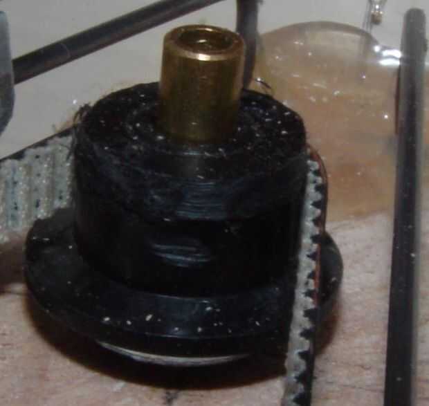 Entonces esperó el epoxi fijar, luego se deslizó dos arandelas en el eje de la polea a la altura correcta - para asegurarse de que el soporte funciona al ras con la 'tapa' del cuadro de