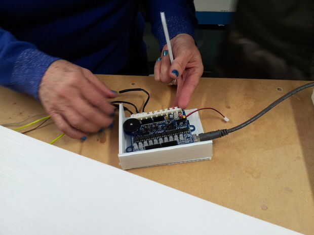 Puede que desee crear una cubierta para tu escudo Arduino y secuenciador. Utiliza alguna tabla de desecho para hacer una caja y utiliza pegamento caliente para unir a la señal.