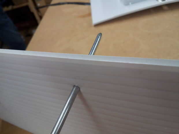 Queríamos que nuestra señal se muestren en diferentes configuraciones. Sobre todo, sin embargo lo colgaré fuera arriba de la puerta, así agregamos arandelas porque protegen los orificios y mirada agradables.