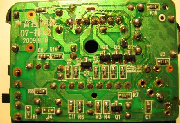 Desafortunadamente, estas modificaciones hacen que el inversor susceptibles al ruido recogido por el cable de audio. Para solucionarlo usé una resistencia de 220 ohm. Había soldado la primera pierna a la línea de audio donde se une la rueda y la segunda etapa en donde el terminal negativo de la batería se encuentra con el PCB. Normalmente terminal negativo de la batería de los puentes de toma de conector de barril el PCB del cojín a tierra pero pues me lo quitaron he utilizado el resto de la pierna de la resistencia para conectarlos.
