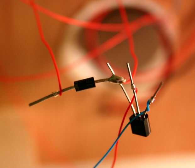Para colmo mi árbol, quería a un iluminado Ángel con las alas de aleteo. Cuando no pude encontrar uno, hice mi propio usando una aleteo mariposa (scientificsonline.com) y un "directo LED G4" de earthled.com. Empecé con un adorno de angel de KM