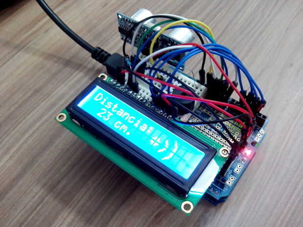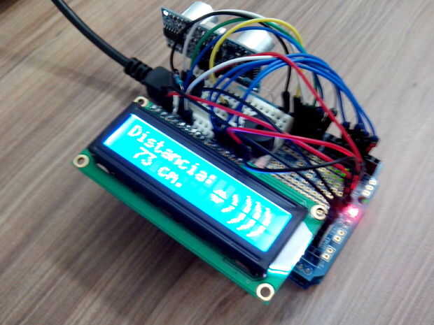 Hay muchos proyectos hasta ahora utilizando una HC-SR04 como un aparato de medición, pero he visto a ninguno con una animada pantalla LCD y un zumbador integrado. Este tiene estilo y personalidad!