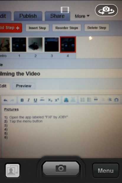 Ahora a empezar a tomar fotos, los objetos en movimiento un poco entre cada foto. Cuanto más te mueves que los objetos entre cada foto, más rápido se parecen moverse cuando se hace el video. Cuando haya terminado con su película, presione "Done" y se guardarán en su rollo de cámara.