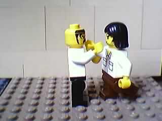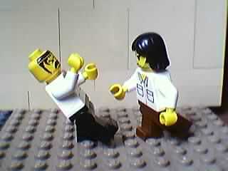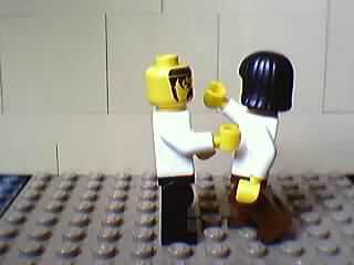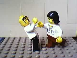 bien, debido a algunas personas pidiendo, aquí es una actualización, que tienen una pelea de stopmotions. bueno, para la lucha contra el puño, está generalmente sólo teniendo la minifig ofensiva que sólo un montante de la minifig defensiva, como tal, en las fotos. Ahora, para que le tiro un golpe, levantar su pata trasera un poco así que él puede hacer pivotar en el perno prisionero, levantar un brazo un poco el higo del oscilación de la viga en cada fotograma y que tenerlo!!