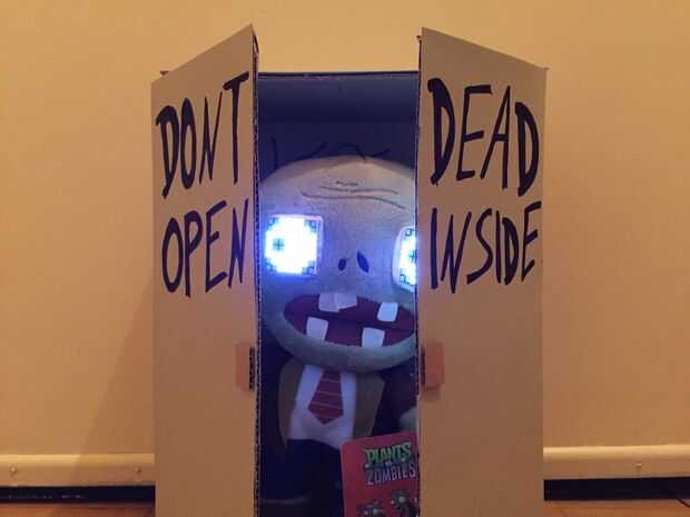 Brains!!OM nom NOM...¿Que siempre quisiste tener una versión de la vida real de los zombies del juego video? Bien, ahora usted puede!Este zombie reacciona a los otros objetos-el cerebro, Wall-Nut y el guisante Shooter.El BRAAIIINNNSS del zombie es e