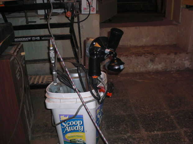 De desecho de madera para la base – 1 pieza un poco ya que la varilla roscada y 1 pieza de 24 pulgadas o menos. Éstos están montados juntos para formar una T (ver fotos).